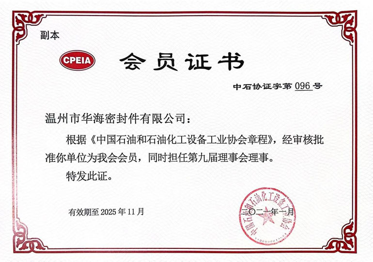 中國摩擦密封材料協(xié)會理事單位證書                             中國液壓氣動密封件工業(yè)協(xié)會會員單位證書