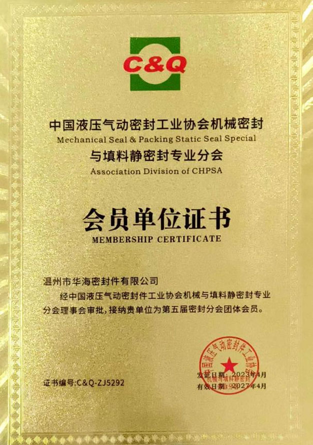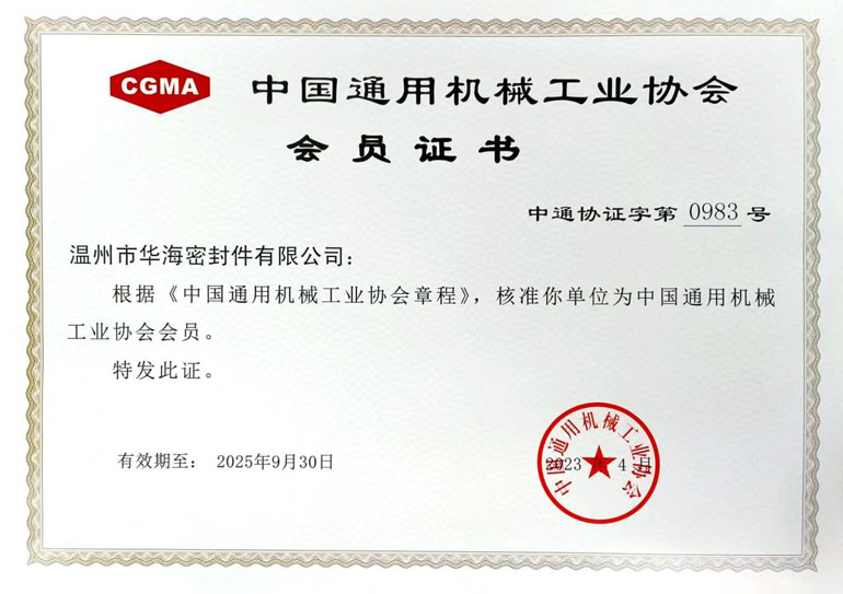 中國通用機械工業(yè)協(xié)會會員單位證書                                        慈溪密封行業(yè)協(xié)會會員單位證書